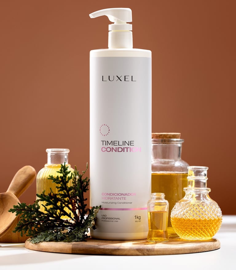 O Condicionador Timeline Condition é a etapa final do tratamento, formulado para selar as cutículas, prolongar os benefícios do cronograma capilar e proteger os fios contra danos externos. Sua composição balanceada combina ativos nutritivos e hidratantes, como a Biotina, que fortalece desde a raiz até as pontas, a Manteiga de Karité, que forma uma barreira protetora contra o ressecamento, o Pantenol, que suaviza e confere sedosidade, e a Rosa de Jericó, que proporciona hidratação duradoura. Esse condicionador deixa os cabelos incrivelmente macios, brilhantes e com as cutículas seladas, promovendo retenção de nutrientes e resistência extra para o dia a dia.