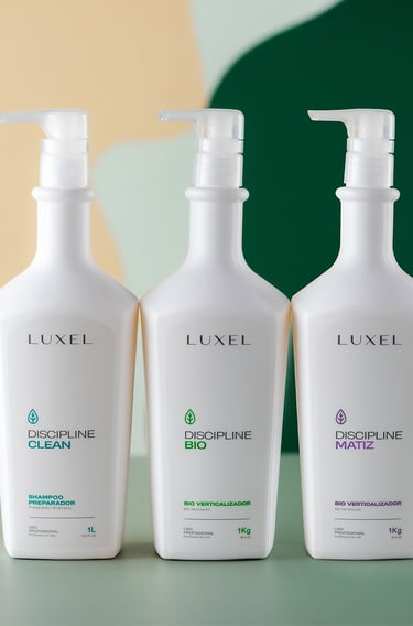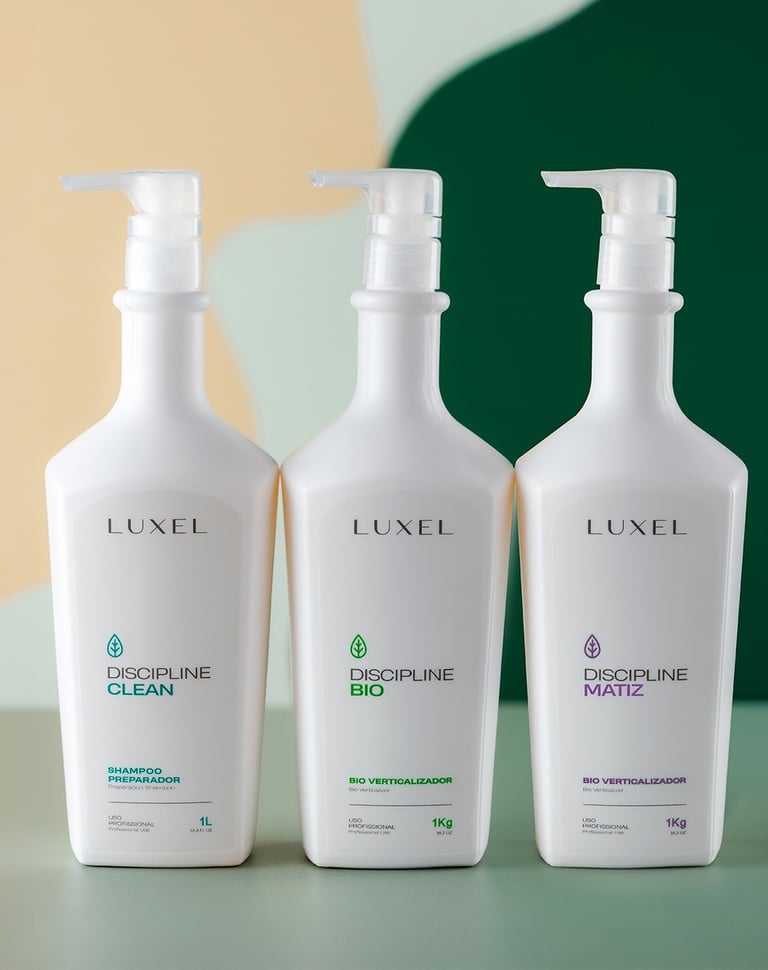 A linha Discipline da Luxel é um sistema completo bio-orgânico, desenvolvido para quem busca fios disciplinados com saúde, brilho e movimento natural. Composta por três produtos — Discipline Clean, Discipline Bio e Discipline Matiz — a linha promove limpeza profunda, realinhamento sem agressão e finalização com ação matizadora. Uma solução profissional e segura, livre de formol, ideal para cabelos quimicamente tratados, loiros, descoloridos ou naturais.