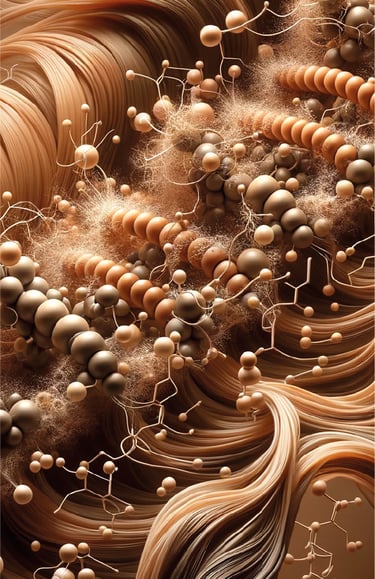 Em resumo: A queratina capilar, em sua máxima densidade, é uma proteína formada por aminoácidos. Estes são unidos por ligações peptídicas, que constituem a estrutura primária da proteína. Os lipídios, presentes no Complexo de Membrana Celular (CMC) da fibra capilar, desempenham um papel importante na proteção e manutenção da integridade da fibra, mas não atuam diretamente na nutrição ou reforço dos aminoácidos. Eles ajudam a manter a hidratação do cabelo e a proteger contra danos externos. A água também é crucial para manter a flexibilidade e a elasticidade do cabelo, interagindo com as proteínas e os lipídios. Juntos, esses componentes contribuem para a constituição e preservação da queratina, garantindo a saúde e a resistência da fibra capilar