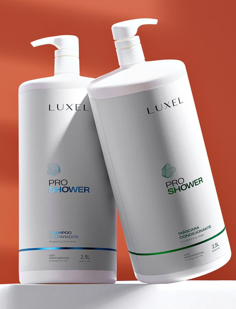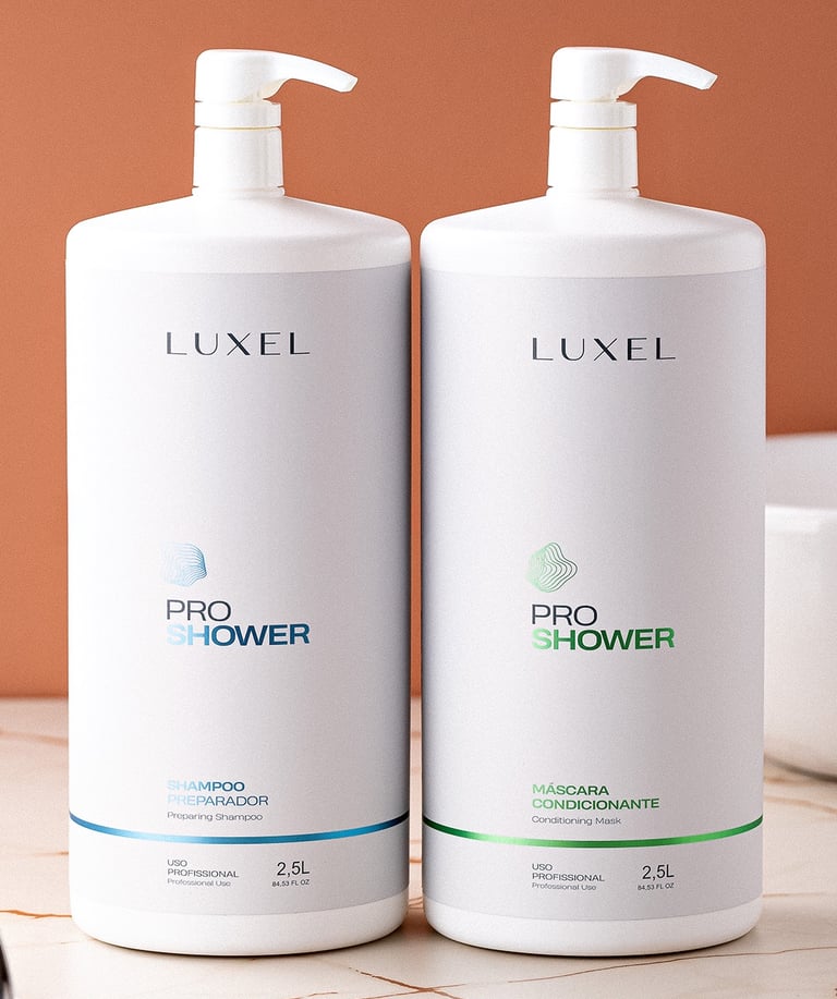 A Linha Pro Shower da Luxel, uma revolução no tratamento capilar de alta performance para o lavatório. Diferentemente dos produtos convencionais do mercado, que muitas vezes possuem qualidade inferior, comparável à de detergentes, a Luxel optou por uma abordagem de excelência.